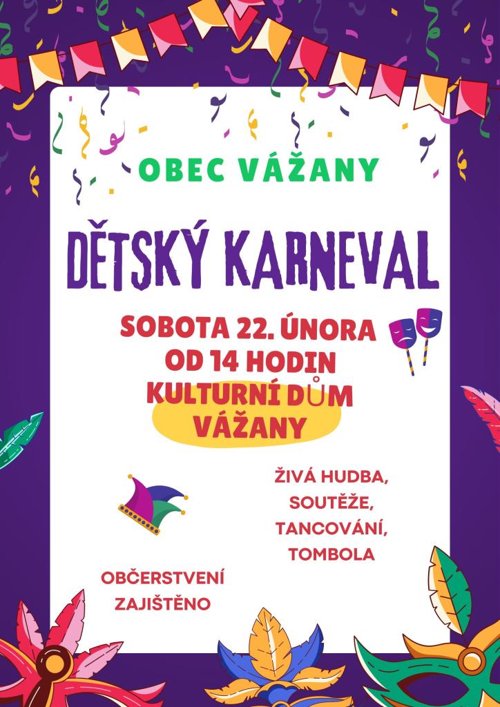 Obec Vážany vás srdečně zve na dětský karneval.